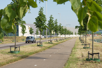 It is best to use short above-ground tree stakes, which extend a maximum of eighty to a hundred centimetres above ground level. Short tree stakes give trees more freedom to move and they therefore develop stabilisation roots faster. This means the tree will anchor itself better and more quickly. Longer tree stakes, on the other hand, make the tree static and 'lazy', which results in worse anchoring in the short term. Long stakes also have a negative impact on the thickening of the trunk.