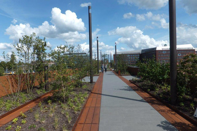 The city park was designed by Piet Oudolf, who took inspiration for the green bridge in Den Bosch from the Ponte Vecchio in Florence. Aside from urban greenery, the bridge also contributes to sustainability in another way. A system for heating and cooling storage has been constructed under the bridge deck. The heat that is stored in the summer is used to heat the floor in the winter and minimise salt spraying.