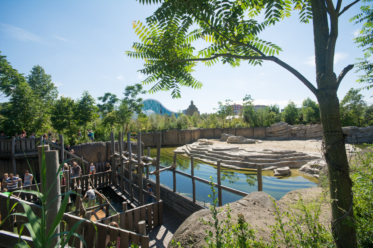 With the construction of WILDLANDS Adventure Zoo Emmen, as the successor to the Noorder Dierenpark, a unique zoo has been created. It has become a green space with an educational character. A zoo that aims to offer visitors a fascinating experience by recreating different ecosystems from around the world. The zoo is divided into three thematic zones: Jungola, Serenga and Nortica. This has been done to allow the animals to be displayed in an environment that is as natural as possible. Solitary trees that fit in with this atmosphere have been chosen to achieve this. The design of the buildings is also part of this. Jungola is an area that mimics the jungle and features lush vegetation, with many large-leaved plants and climbing plants (lianas) for an optimal “jungle atmosphere” experience. Waterfalls and a large covered rainforest hall are also provided. Serenga is designed to resemble the African savannah and is characterised by vast grasslands with scattered trees and shrubs. Visitors can see animals such as lions, giraffes and zebras here. The trees have characteristic shapes with spreading branches and few leaves, adapted to the dry savannah conditions. This atmosphere has been created in Emmen by planting trees with compound leaves, such as acacia-like plants. The Nortica section focuses on the polar regions and is home to sea lions and polar bears, among other animals. In order not to disrupt the illusion of the different worlds within the park, the outside world is not visible from the park. This has been achieved by planting a wide, enclosed green buffer around the park. Visitors experience a completely different world in which all the details are coordinated.