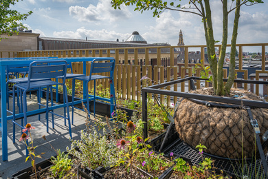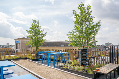 When designing the roof garden, great attention was paid to the technical aspects to ensure that the space remains flexible and sustainable. The roof garden is fully modular, meaning that the various components can be easily removed and reinstalled when maintenance of the building is required. This makes the roof garden not only practical, but also future-proof. Another important aspect of the design is the lightweight construction, which ensures that the roof is not overloaded. With a maximum load of only 250 kg per square metre, a light but robust solution has been provided that respects the integrity of the building.