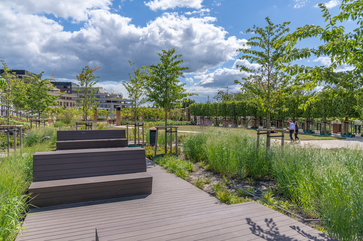 Bien que situé au cœur d'un quartier résidentiel très animé, le parc semble spacieux et verdoyant. Cela s'explique en grande partie par les lignes épurées de sa conception et le choix parfaitement équilibré des plantes. L'élément végétal le plus remarquable est la double rangée de tilleuls qui forme un immense mur naturel.