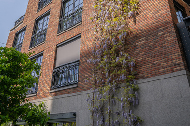 Les façades ont également été végétalisées en y plantant de nombreuses plantes grimpantes qui cassent l’aspect massif des volumes de briques. Grâce à une variété équilibrée de plantes vivaces, de bulbes à fleurs et d’arbustes, les habitants profiteront d’un tableau qui évolue tout au long de l’année. Le choix d’une végétation de grand format a été bien mis en œuvre grâce à l’utilisation d’espèces d’arbres telles que le Fraxinus ornus, le Koelreuteria paniculata, le Cornus controversa, le Populus alba et le Tilia cordata. Cette végétation confère non seulement un caractère clos et intime à ce nouveau projet, mais elle contribue également à lutter contre l’effet d’îlot de chaleur et à améliorer l’acoustique.