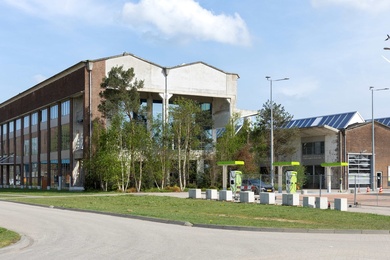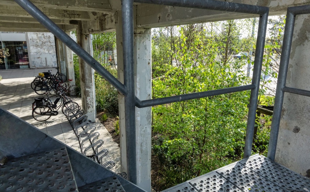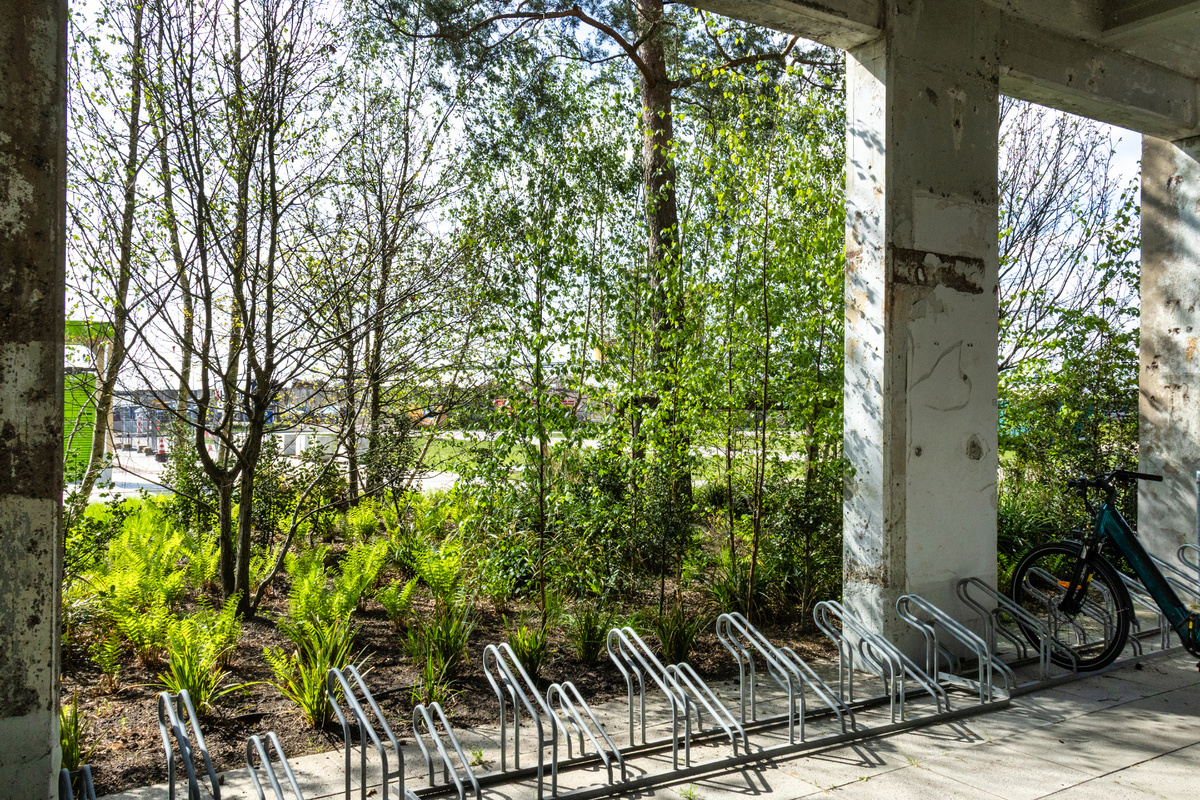 L'ancienne zone industrielle Kleefse Waard, récemment rebaptisée Cleantech Park Arnhem, est en pleine transformation. Ce qui était autrefois un site fortement pollué, isolé du monde extérieur, est aujourd'hui un environnement de travail moderne, accueillant et verdoyant. L'objectif de cette transformation est de préserver l'atmosphère industrielle et monumentale tout en verdissant l'espace extérieur. La plantation de grands arbres joue un rôle important à cet égard. Près du bâtiment KB, l'un des nombreux bâtiments monumentaux, cela se traduit par le choix de plantes locales qui s'harmonisent avec la végétation sauvage de la Veluwe toute proche.