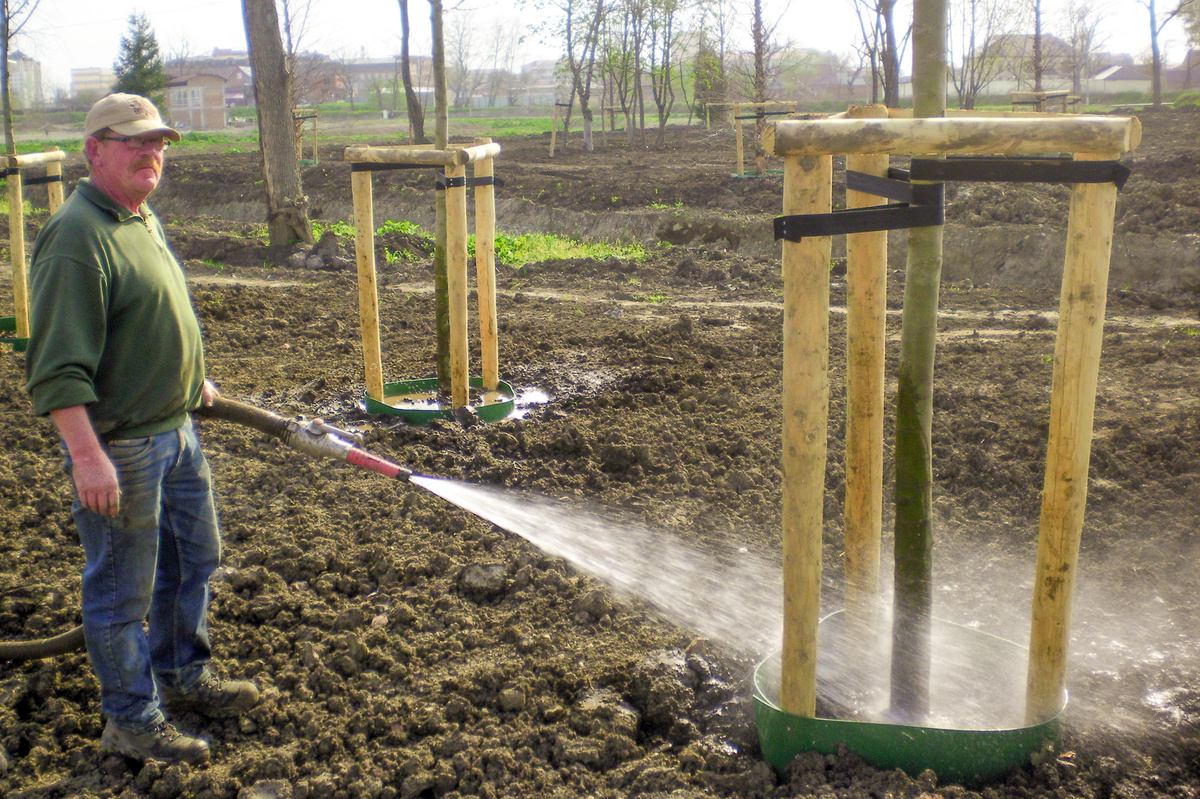 Bewateren is maatwerk: bij zowel een tekort als overschot aan water zal de boom sterven doordat er in dat geval geen zuurstof meer bij de wortels kan komen. De hoeveelheid water en de frequentie van water geven moet daarom continu worden aangepast aan de omstandigheden. Om te bepalen of de bodem droog is en de boom water nodig heeft, is het niet voldoende de bodem aan de oppervlakte te bekijken. Door een regenbuitje kan de bodem vochtig genoeg lijken terwijl de diepere laag uitgedroogd, of door een korte droogteperiode kan de bodem te droog ogen terwijl de diepere laag vochtig genoeg is. Om het werkelijke vochtgehalte te bepalen moet gekeken worden op vijftien centimeter diepte. Een vuistregel om de watergift te bepalen is dat bomen met een stamomvang van minder dan zestig centimeter twee- tot driehonderd liter water per keer behoeven en bomen met een stamomvang boven de zestig centimeter drie- tot vijfhonderd liter per keer. Water moet gegeven worden vanaf het moment dat de knoppen gaan zwellen en schuiven. Bovenstaande hoeveelheden worden dan niet direct gegeven, maar pas bij het compleet in blad staan van de kroon. De hoeveelheden zijn natuurlijk ook erg afhankelijk van de standplaats: zo zijn bodemsoort, zon, schaduw, wind en verharding sterk van invloed op de hoeveelheid vocht die verdampt wordt en dus aangevuld moet worden. Bij naaldbomen is het aan te bevelen om tegen de avond water over de kronen te sproeien zodat de verdamping door de naalden beperkt wordt. De controle van de vochttoestand is tijdens de hele vegetatieperiode van belang, evenals het controleren van de verankering en de ontwikkeling van ziekten en plagen zodat tijdig kan worden ingegrepen.