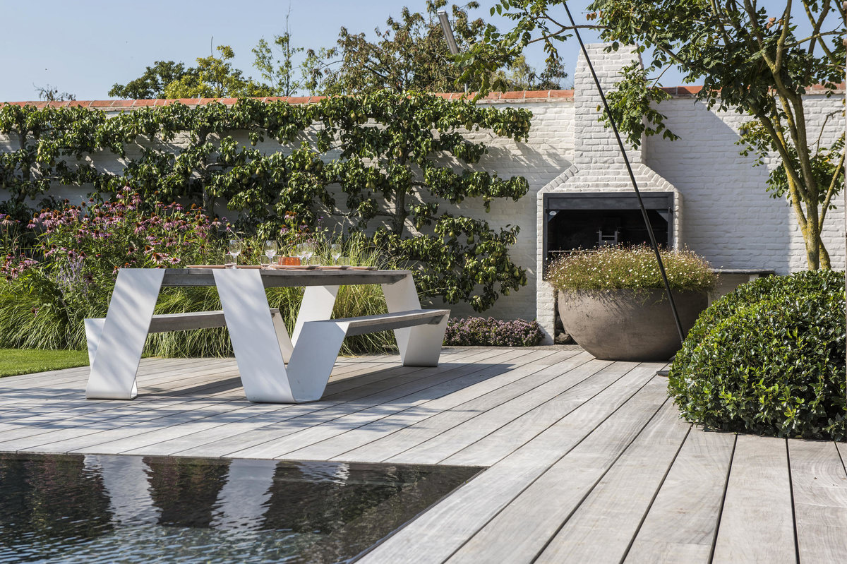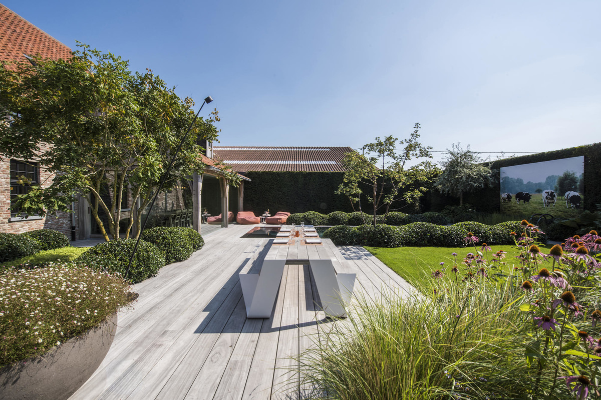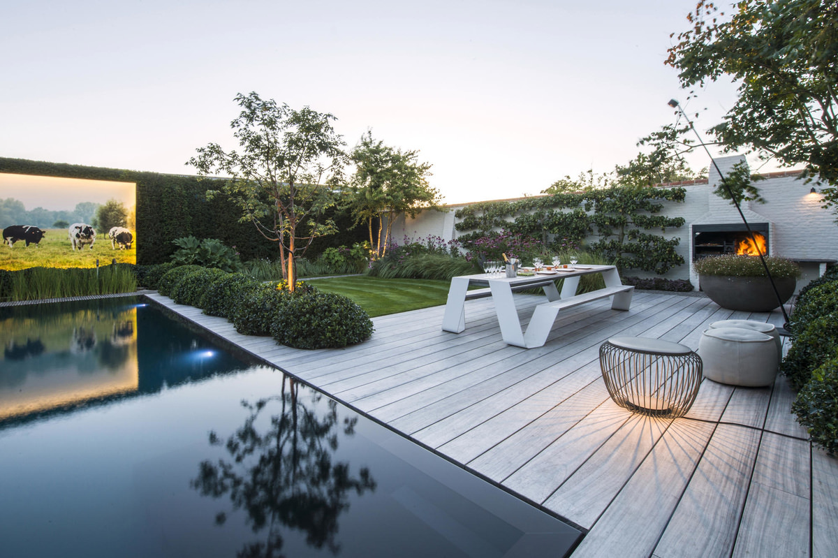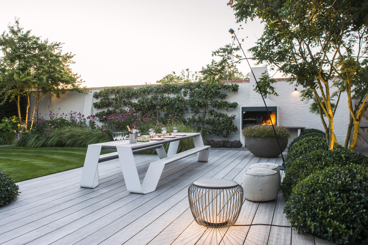 Bomen zijn cruciaal in een tuinontwerp. Geen andere plant is in staat zoveel te bieden als een boom: ze bieden schaduw, blokkeren inkijk en dempen hinderlijke geluiden om een paar voorbeelden te noemen. Door hun rijke bloei en vruchten bieden ze ook voedsel voor wilde dieren. Door de enorme keuze in soorten en kweekvormen kan de ontwerper met een rijk keuzepallet ontwerpen. Van rijk bloeiende solitaire meerstammigen tot strakke zuilvormige laanbomen die als markering worden ingezet of een klimboom is mogelijk. Ook zorgen bomen voor structuur in het ontwerp en seizoensgebonden kleur. Een zorgvuldige selectie zorgt ervoor dat ze het tuinontwerp aanvullen en de biodiversiteit ondersteunen. Door het slim plaatsen van een aantal grote bomen in een nieuwe tuin, creeer je aanleg direct een volwassen beeld.