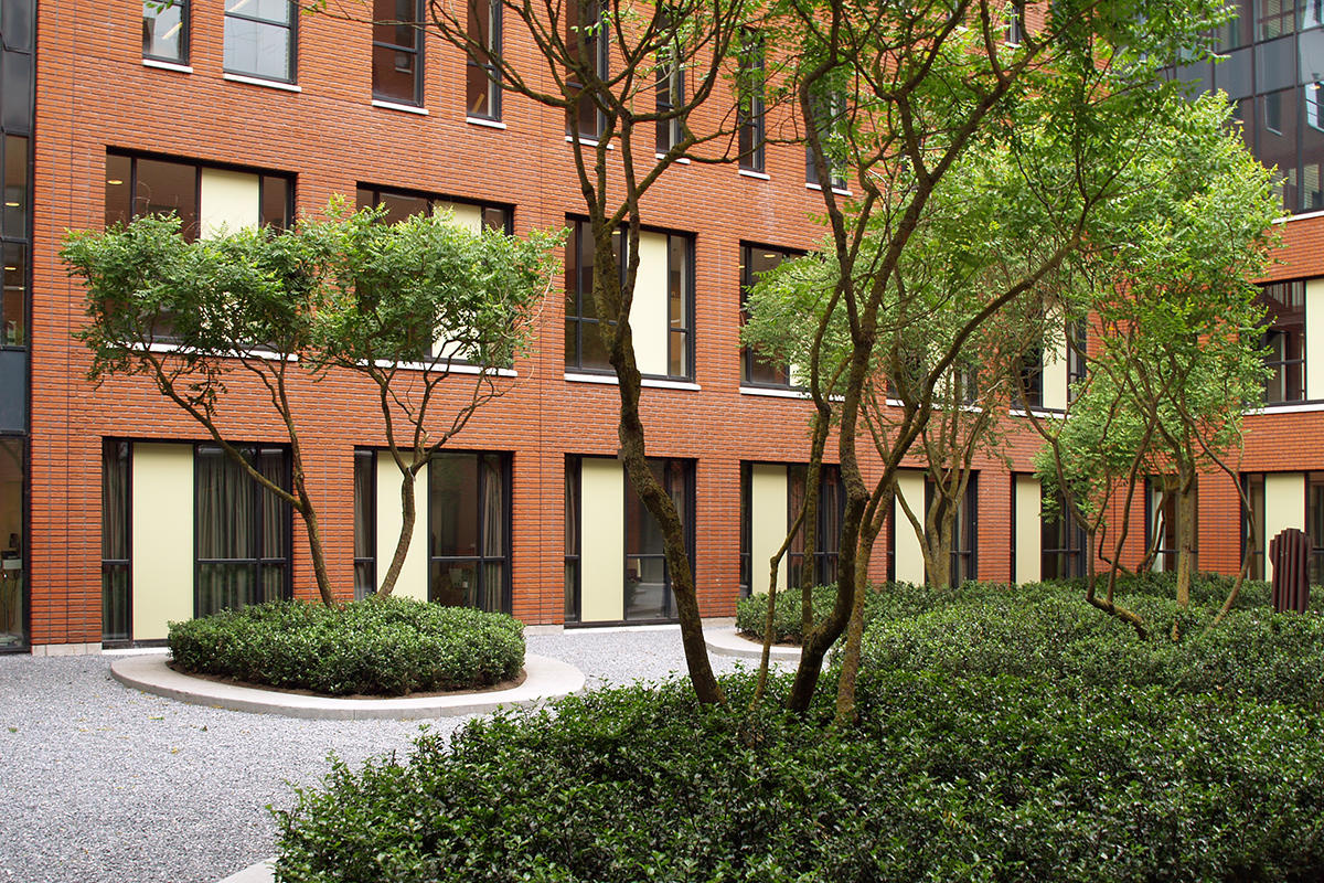 Aan de rand van ‘s-Hertogenbosch siert een enorme diversiteit aan meerstammigen het zorglandschap van het Jeroen Bosch Ziekenhuis. Bij de ontwikkeling van de buitenruimte stond aansluiting met de stad aan een zijde van het gebouw en aansluiting met het landschap aan de andere zijde voorop. Vanuit die gedachte creëerde MTD Landschapsarchitecten met een breed sortiment meerstammige bomen een natuurlijke sfeer en een eigentijdse vormgeving, die recht doet aan de omgeving. Tussen de gebouwen van het ziekenhuis liggen patio-tuinen met een heel eigen groenbeleving. De tuinen dienen als ontspanningsruimte, waarbinnen groen en kunst een positieve bijdrage leveren aan het genezingsproces van patiënten.