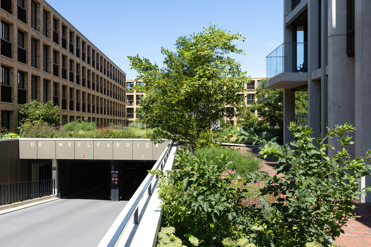 De tuin ontworpen rondom De Meelfabriek laat zien hoe een voormalig fabrieksterrein kan transformeren tot een levendig stuk stadsgroen. Door slim gebruik te maken van de beperkte ruimte, beplanting en duurzame technieken ontstaat een plek die geschiedenis en toekomst met elkaar verbindt. Het complex bestaat uit tien rijksmonumenten en vier nieuwbouwpanden. Na de transformatie is de voormalige fabrieksfunctie gewijzigd in woonruimte, horeca, kantoor, sport, winkels, kunst en cultuur. Ook is er onder een deel van het park een parkeergarage aangelegd.