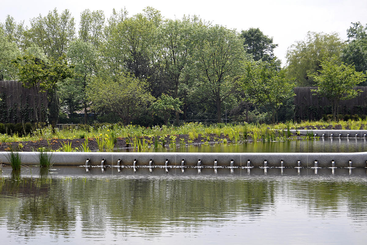 включая Betula pendula (береза повислая), Castanea sativa (каштан посевной), Prunus avium (вишня птичья), Quercus cerris (дуб серый), Quercus petraea (дуб скальный) en Ulmus 'Dodoens' вяз «Додунс». Многотвольные деревья: Amelanchier lamarckii (ирга Ламарка), Carpinus betulus (граб обыкновенный), Crataegus x persimilis 'Splendens' (боярышник сливолистный «Спленденс») и Malus 'Evereste' (яблоня «Эверест»)