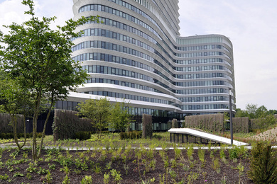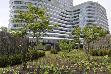 Многоствольные деревья в парке на крыше DUO обеспечивают пространству декоративность на протяжении всего года, благодаря цветению, осенней окраске листвы и зимним силуэтам.